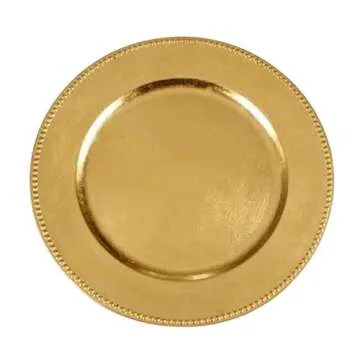 DKK Gold Plastic Beaded Charger Plates - 6pcs 13 Inch Round Wedding Party Decoration Charger Plates (Gold, Silver) (Gold)