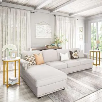 DKLGG Modern Gold Side Table Set of 2, Small Coffee Table Round End Table with Gold Frame, Marble Side Table Bedside Table for Living Room, Bedroom, Small Space, 16" D*24" H