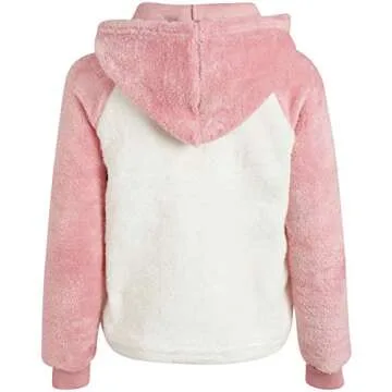DKNY Girls' Sweatshirt - Lightweight Pullover Fleece Hoodie, Size 14-16, Silver Pink/Off White