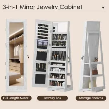 Show moreIntroducing the DlandHome 360° Swivel Jewelry Cabinet, the ultimate solution for jewelry lovers seeking both style and functionality. This exquisite lockable jewelry armoire features a stunning full-length mirror that not only enhances your decor but also serves as a practical storage organizer. With impressive dimensions that seamlessly fit into any corner of your room, this versatile cabinet enables you to easily showcase and access your cherished jewelry while ensuring it remains secure and organized.