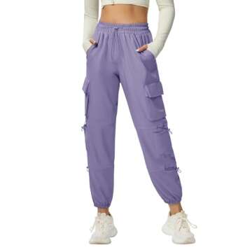 DLOODA Quick Dry Cargo Pants Lightweight Tactical Hiking Pants with 6 Pockets for Women, Elastic Waist and Water-Resistant Purple