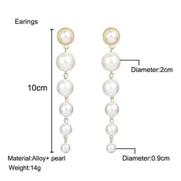 Dmaiy Boho Gold Pearl Earrings Dangle Beads Earrings Thin Drop Bridal Earrings Handmade Statement Wedding Ear Accessories Jewelry for Women (Long Tassel)