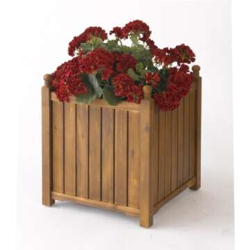 Introducing the DMC Products 70417 20-Inch Lexington Square Solid Wood Planter, where timeless design meets exceptional craftsmanship. Skillfully crafted from high-quality solid wood, each planter features a stunning upright finial turned from a single piece of wood, ensuring both strength and elegance. The planters are not only visually appealing but are also treated with a durable teak oil color UV-rated coating, making them weather-resistant and ideal for outdoor use. Their dimensions...