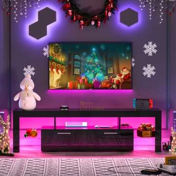 DMIDYLL Black 63 inch TV Stand with LED Lights for 55 60 65 70 75 Inch TVs, Modern TV Console with Storage Drawers for Living Room, Bedroom, High Gloss LED Entertainment Center