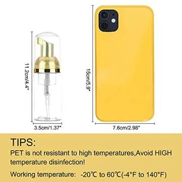 Show moreIntroducing the Dming 8 Pcs 1oz 30ml Plastic Foamer Pump Bottle Foam Dispenser – a game changer in the world of personal care and cleaning on-the-go. Crafted from high-quality plastic (PET) with a stylish glossy gold pump and clear snap cap, these mini liquid foaming bottles are not just visually appealing but also highly functional. Perfectly sized at 4.4" in height and 1.40" in diameter, they are designed to fit seamlessly into your purse, diaper bag, or travel kit, making them ideal for busy individuals who appreciate convenience without compromising on style. Imagine having your favorite hand soap, lash shampoo, or DIY cleaning solutions readily available wherever you go!