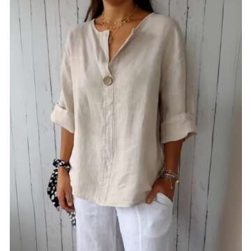 Best Occasions to Use This Gift: The DMOYALA Women's Linen Shirt is particularly perfect for summer outings, where comfort and style are equally important. Whether you're spending a leisurely day at the beach or attending an outdoor brunch, this versatile top ensures you'll look chic while staying cool.