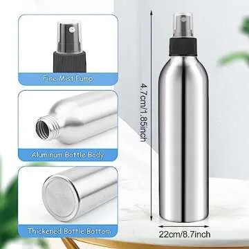 Show moreDiscover the ultimate solution for your liquid storage needs with the DMuuuDM 4-Pack 8oz Aluminum Fine Mist Spray Bottles. Crafted with passion and designed for versatility, these aluminum spray bottles are perfect for anyone looking to transport their favorite fragrances, DIY bug sprays, or essential oil concoctions safely and effectively. With a sleek, durable design, they’re not only lightweight and easy to carry but also eco-friendly, making them a standout choice for both everyday use and adventurous travels.