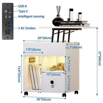DNBSS LED Nightstand (White, Lift Top) - Innovative & Stylish Home Storage