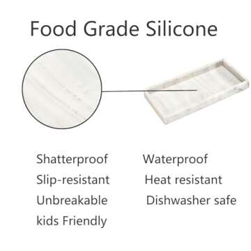 DNC Silicone Bathroom Tray for Counter, 2PC 7.9" Vanity Tray for Countertop, Kitchen Sink Soap Tray for Dish Holder Dispenser Toilet Tank Desk Organizer Marble White