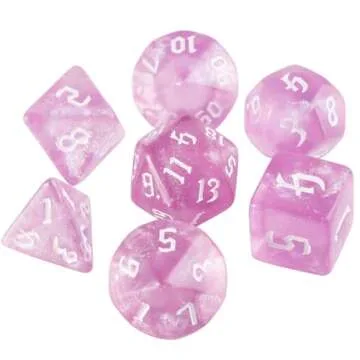 DND Pink Transparent Glitter Dice Set for Dungeons and Dragons, RPG & MTG