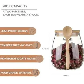 DNIENKGE Airtight glass jar storage container with bamboo lid Set of 2, wide mouth, leak-proof, With a spoon, can be used for coffee beans, tea leaves, grains, dried fruits, etc (Middle)