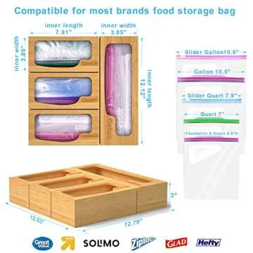 DNTGVUP Ziplock Organizer for Drawer - Bamboo Baggie Dispenser with Bag Holder for Food Storage, Quart, Sandwich&Snack for Various Size
