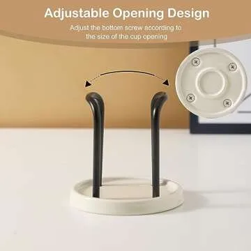 Show more This stunning compact cup holder transforms your bathroom aesthetics while offering unmatched functionality. Measuring just 2.75 inches in diameter and 3.55 inches tall, it perfectly accommodates 3 oz. or 88.7 mL cups, making it an ideal addition to any bathroom vanity or countertop without taking up too much space. Crafted from premium quality materials, the base features eco-friendly white ceramic, ensuring you're making a sustainable choice over plastic or wood. The sturdy aluminum frame doesn't just provide durability; it’s also rust-resistant, making this cup holder resilient against water damage.
