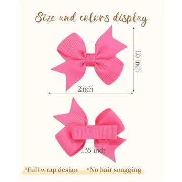 doboi 80PCS 2'' Baby Girls Fully Lined Grosgrain Boutique Solid Color Ribbon Mini Hair Bows Clips for Teens Infants Kids Toddlers Newborn Children Set of 40 Pairs