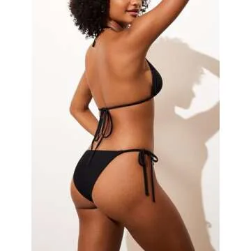 Show more Unleash your inner beach goddess with the DOBREVA Women's Two Piece Swimsuit Triangle Bikini Sets. Crafted from an elastic ribbed fabric, this stylish bikini promises a comfortable and flattering fit that accentuates your curves beautifully. Designed for the modern woman who loves to blend style with practicality, its cheeky back coverage and low-rise silhouette allow you to confidently showcase your figure while soaking up the sun. Available in a variety of vibrant colors, including classic black, this bikini is perfect for making a bold statement at the beach or poolside.