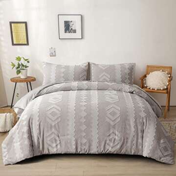 Show moreIntroducing the Dobuyly Boho Tufted Comforter Set, your ultimate bedding upgrade that perfectly combines style, comfort, and functionality. This gorgeous set includes three pieces that cater to your aesthetic desires while ensuring you experience comfortable sleep throughout the seasons. Crafted from premium cationic dyeing fabric, it's lightweight yet versatile, making it an ideal choice for every bed in your home. The blend of soft, subtle colors with geometric tufted patterns effortlessly adds a touch of shabby chic charm to your bedroom, transforming your sleeping space into a cozy retreat.