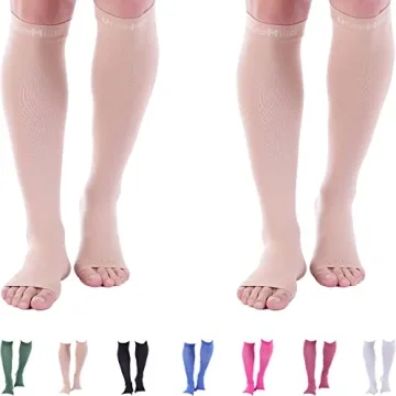 Doc Miller Toeless Compression Socks Women and Men 2 Pair - 20-30mmHg - Open Toe Compression Socks Women for Shin Splints Varicose Veins Leg Cramps Recovery - Support Circulation - Skin Nude Large