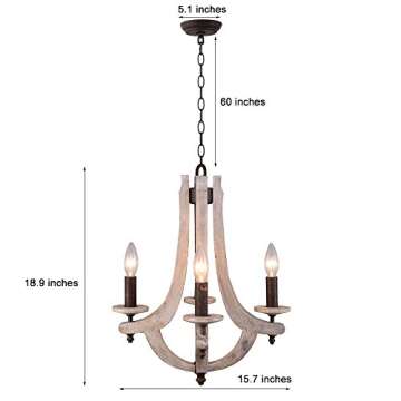 DOCHEER Farmhouse Retro Wood Chandeliers Farmhouse 4 -Light Vintage Rustic Pendant Lamp Lighting Fixture for Dining Room, Bedroom, Living Room, Kitchen, Island, Entryway, Foyer