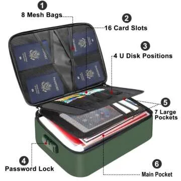 Measuring at 14.2 x 10.6 x 4 inches, the bag boasts a well-thought-out multi-layer design that includes numerous compartments: 8 passport mesh bags, 16 card slots, 4 U Disk pockets, and 7 folder layers. This extensive organizational feature allows you to store everything from documents to laptops neatly. You'll find that locating your items becomes effortless, saving you valuable time during emergencies.