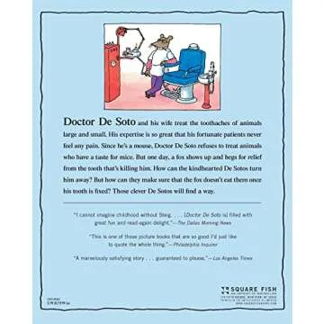 Show moreStep into the delightful world of Doctor De Soto! This beloved children’s book, recognized as a Newbery Honor Book and a National Book Award Finalist, presents a charming tale that captivates readers young and old alike. Follow Doctor De Soto, a clever and kind mouse who runs a dental practice with his wife, Mrs. De Soto. The story expertly blends humor, adventure, and important life lessons that instill values of compassion and integrity. As Doctor De Soto navigates the challenges of treating a fearsome patient—an insatiable fox—you'll find yourself drawn into a tale that is not only entertaining but also rich in character development and moral insights. Perfect for bedtime stories and classroom readings, this book is an essential addition to any child’s library, sparking imagination while teaching kindness and bravery in unexpected circumstances.