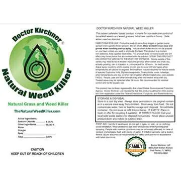 Show moreIntroducing the Doctor Kirchner Natural Weed & Grass Killer, your eco-friendly solution to tackling pesky weeds in your garden! This powerful formula consists of a unique blend of ocean salt water, food grade vinegar, and soap, providing an effective yet natural way to eliminate unwanted vegetation without harming the environment. With no glyphosate or hormone-disrupting chemicals, you can have peace of mind knowing you are using a sustainable product that is safe for your home, pets, and family. The 1-gallon size is perfect for those larger outdoor areas that need attention, ensuring your garden stays neat and weed-free.