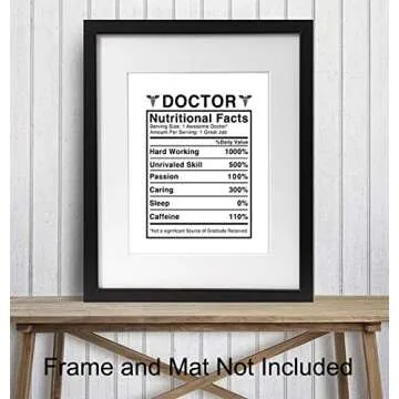 Doctor Nutritional Facts Wall Art - Funny 8x10 Room Decor, Home Decoration for Medical Clinic or Office - Unique Gift for Dr, Physician, Med Student - Unframed Poster Picture Sign Print