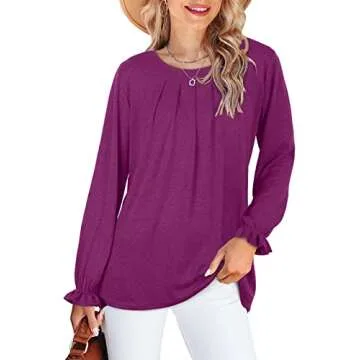 Dofaoo Womens Fall Tops Casual Ruched Long Sleeve Tee Shirts For Women Fuchsia M
