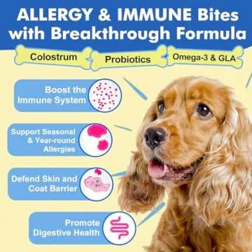 Show moreIntroducing our **Dog Allergy Relief Chews**, a breakthrough formula specially crafted to provide your furry friend with the relief they deserve. These delicious chews harness the power of **colostrum, probiotics, and omega fatty acids 3 and 6**, along with effective anti-inflammatories, to support your dog's immune system while addressing allergy symptoms that can lead to itching, scratching, paw licking, and skin irritation. With a focus on all-natural ingredients and designed for maximum efficacy, these chews ensure your dog can enjoy life itch-free!
