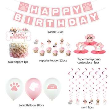 Dog Birthday Decorations,Dog Paw Prints Party Supplies for Girls Pink Lets Pawty Puppy Paw Themed Balloon , Banners, Cake Toppers &cupcake toppers,Hanging Swirls,paper honeycomb centerpiece