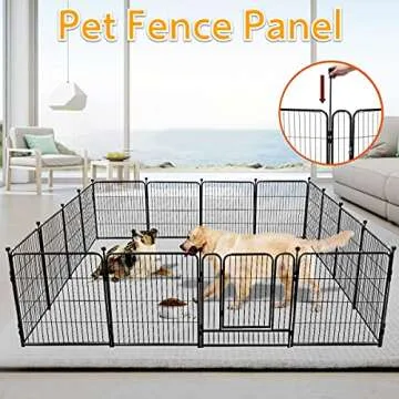 Dog Fence 16 Panels 32" H Pet Playpen Metal Outdoor Portable Camping RV Dog Fences Runs Cage Foldable Exercise Pens Fencing with Two Doors Indoor Temporary Fence for Dogs, Puppy, Garden