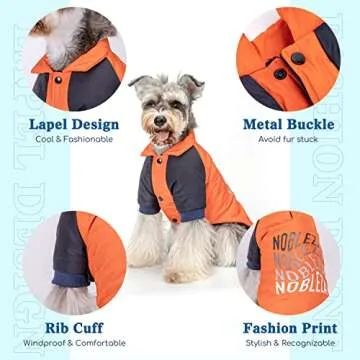 Dog Jacket, Nobleza Waterproof & Windproof Fleece Lined Dog Winter Coat with Leash Hole, Fashion Personality Dog Cold Weather Coats for Cold, Wet, Windy and Snowy Day(Orange M)