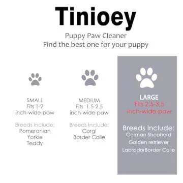 Introducing the **Tinioey Dog Paw Cleaner for Large Dogs**, an innovative solution designed to keep your home mud-free and your furry friend happy! With its generous dimensions of **8.7 inches tall and 4.7 inches wide**, this handy cleaner is perfect for large breed dogs, accommodating paw sizes between **2.5-3.5 inches wide**. No more muddy paw prints trailing through your house; simply twist and clean! This functional yet stylish paw washer features a **gentle silicone brush** that massages your pet's paws...