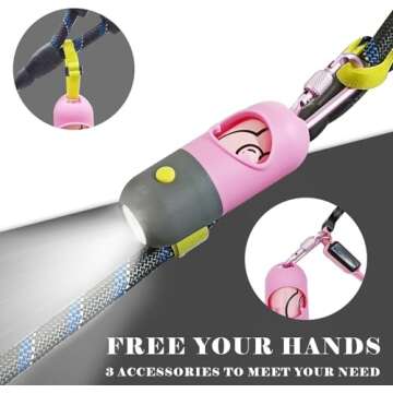 Dog Poop Bags Holder with LED Flashlight|Pet Waste Bags Dispenser for Leash|Doggie Potty Bags Container with Leak-proof Pet Trash Bags and Accessories (1 Holder 15 Bags, Pink)