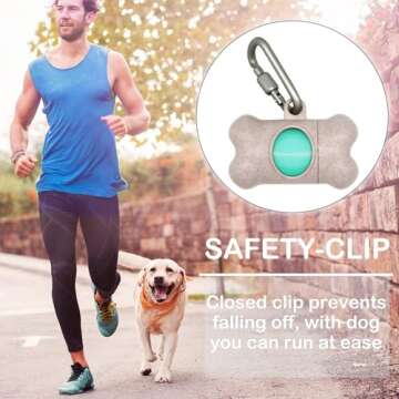 Dog Poop Pickup Bags Holder Dispenser with 1 Roll Random Color Leak-proof Scented Doggy Waste Bags and Carabiner with Safety Lock Plus Hook and Loop Fastener Never Loose on Leash Lead Again (Beige)