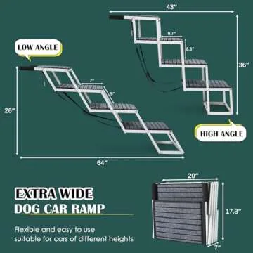 Dog Ramp for Car, Extra Wide Dog Car Stair for Large Dogs, Pet Steps Lightweight Aluminum Foldable Dog Steps for Cars and SUV,High Beds, Trucks, Supports up to 200 lbs (Extra Wide-4 Steps with Rug)