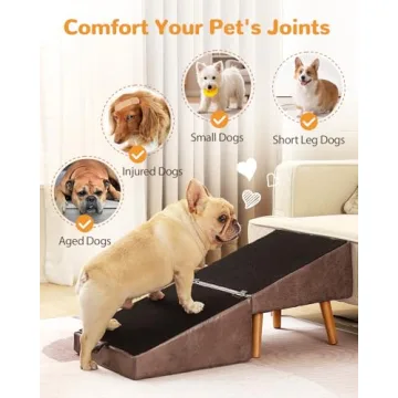 Show moreTransform your pet's mobility with our innovative Dog Stairs for Small Dogs and Cats, an elegantly designed ramp that serves a dual purpose: a functional pet step for your furry companions and a stylish ottoman. Made with solid wood and high-quality materials, this ramp invites pets with joint issues, seniors, and even playful pups to ascend to higher surfaces like couches and beds with confidence. The foldable 2-in-1 design ensures versatility—when fully extended, it offers a sturdy ramp measuring 31.5" L × 13.5" H, while folded it becomes a chic ottoman, perfect for any room layout!