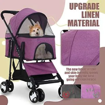 Show more The 3-in-1 Pet Stroller is not just another accessory for your furry friend; it’s a mobile pet haven that combines comfort, safety, and style. Whether you're heading out for a casual stroll, going for a car ride, or attending a pet-friendly event, this stroller is designed with your little canine or feline companion in mind. Constructed with premium durable linen material, it is both skin-friendly and water-resistant, ensuring your pet travels in ultimate comfort while being secure from the elements. The soft cushion adds an extra layer of warmth and love, making it an inviting space for pets weighing up to 44 lbs.