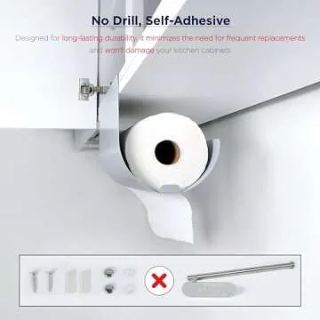 Dogorow Paper Towel Holder - Under Cabinet Paper Towel Holder for Kitchen, Bathroom - One Hand Operation, Space Saving Design - Paper Towel Rack, Self-Adhesive, No Drill Mounting (Gray)
