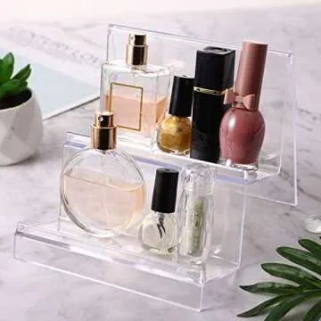 DOITOOL Clear Acrylic Purse Display Stand Holder Wallet Stand 2 Tier Handbag Purse Display Stand Glasses Holder Jewelry Display Riser Shelf for Home Decoration and Organizer