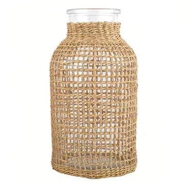 Show more Introducing the exquisite Boho Decor Rattan Vase, a stunning addition to your home that seamlessly marries elegance and nature. Crafted with a captivating rattan design and complemented by clear glass, this farmhouse vase is designed to enhance the aesthetic of any interior. Standing at a charming size of 17.00X8.00X5.50cm (6.68X3.14X2.16 inches), it proves to be the perfect fit for desktop decoration or as an accent on a bookshelf. Imagine placing this dainty vase on your dining table or entryway, instantly brightening your space with its presence.