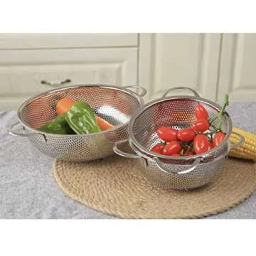 DOITOOL Stainless Steel Colander With Single Long Handle Large Metal Strainer Kitchen Food Strainer for Pasta Spaghetti Vegetable Fruits Noodles Salad 19.2cm