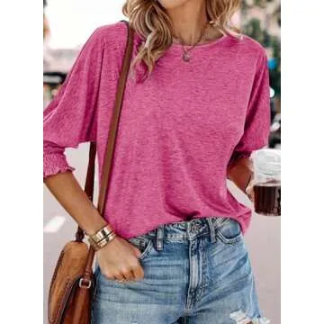 Dokotoo Blouse for Women Dressy Casual Summer 2024 Spring 2025 Trendy Fashion Clothes Clothing Short Sleeve Shirts Business Casual Tops Outfits Teacher for Women Pink Tshirts Shirts