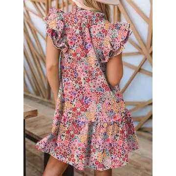 Dokotoo Floral Dress for Women Spring Summer 2024 Trendy Ruffle Cap Short Sleeve V-Neck Pockets Lightweight Tunic Dress Boho Mini Short Dress Multicolor Small
