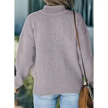 Dokotoo Gray Sweaters for Women Long Sleeve Waffle Knit Tops for Women Fall Fashion 2024 Quarter Zip Pullover Chunky Sweaters Warm Cozy V Neck Oversized Sweater Fall Outfits Clothes Small