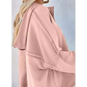 Dokotoo Hooded Sweatshirts for Women Loose Fit Hoodies Casual V Neck Button Up Fall Crop Pullover Sweatshirt Fall Outfits for Women 2024 Pink Medium