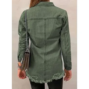 The jacket features a button closure which ensures a snug fit while offering a fashionable silhouette. Available in multiple colors, including classic blue and chic black, it allows you to express your unique style effortlessly. Its distressed design adds a touch of vintage flair and pairs beautifully with countless outfits.