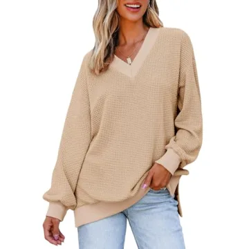 Dokotoo Long Sleeve Shirts for Women - Stylish Oversized Sweater with V-Neck