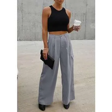 Show more Introducing the epitome of elegance and comfort in women's fashion, these stunning pants are a must-have addition to your wardrobe. Crafted from lightweight material, they ensure you stay stylish without compromising on comfort. With intricate subtle pleat details, they elevate even the simplest outfits, making them perfect for both casual and formal events. These pants feature a high waist design complemented perfectly by belt loops that not only provide practicality but also create a flattering silhouette. Say goodbye to uncomfortable fits, as the hidden zip fly with button closure delivers a secure fit that promises to keep you looking sharp.
