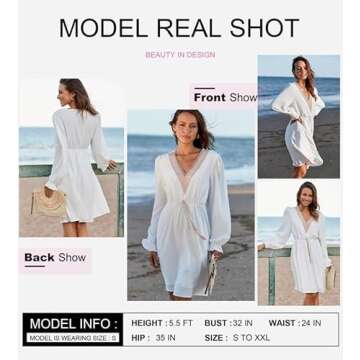 Dokotoo midi Summer Dresses for Women 2024 V Neck Lace Trim Shirt Dress Long Puff Sleeve White midi Dress Tassel Belt Elastic Waist Boho Beach Dress XX-Large