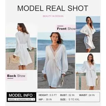 Show more Introducing the Dokotoo Midi Summer Dress for Women 2024 – the latest embodiment of style and comfort just in time for summer! Crafted from ultra-soft Ice silk fabric, this beautiful midi dress strikes the perfect balance between elegance and ease. Its flowing design, paired with a flattering V-neck adorned with delicate lace trim, ensures you shine at any occasion. The long puff sleeves accompanied by a chic tassel belt highlight your waistline, enhancing your natural silhouette. Whether you're planning a casual outing, a formal event, or simply enjoying a sunny day at the beach, this dress is your go-to solution for chic, effortless style. At XX-Large, it caters to various body types, truly making it inclusive for all women who value both comfort and fashion.